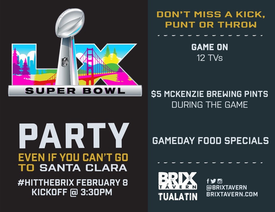 Join us at Brix Tavern on Sunday, February 8th at 3:30pm to catch every play, every commercial, and every big moment of the Super Bowl. We’ll be pouring $5 pints from McKenzie River Brewing all game long, plus rolling out food specials all night to keep you fueled through kickoff and beyond. Grab your crew, claim your seat, and make Brix Tavern your home base for the biggest game of the year.
